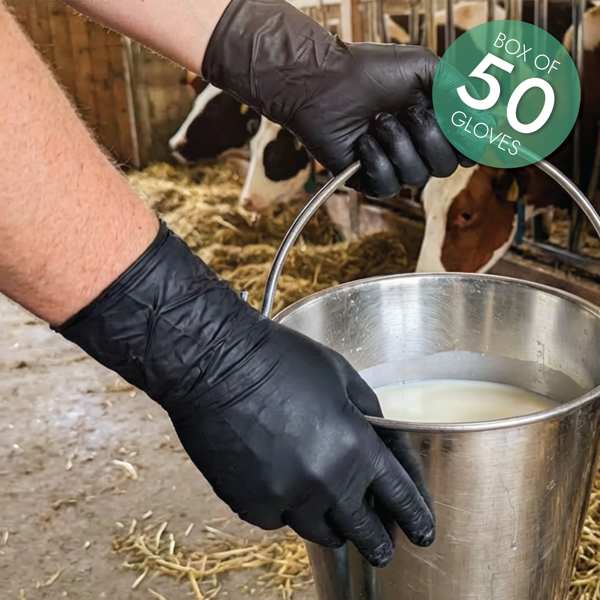Perf - 300mm Milking Gloves - Powder Free Nitrile Gloves - Black - 50 Pack