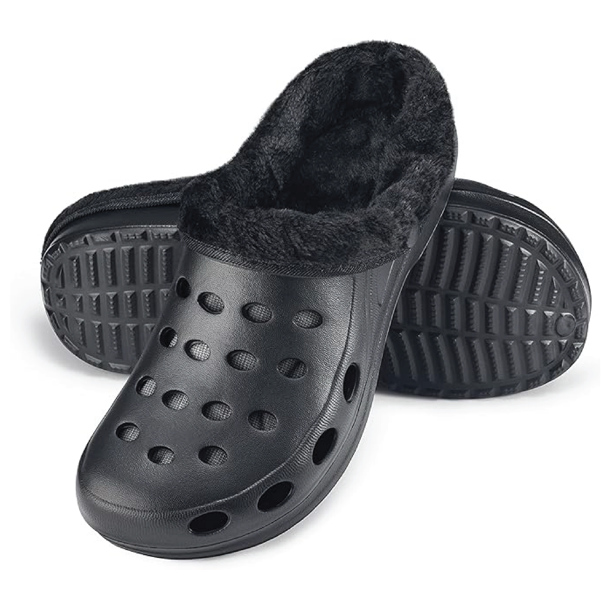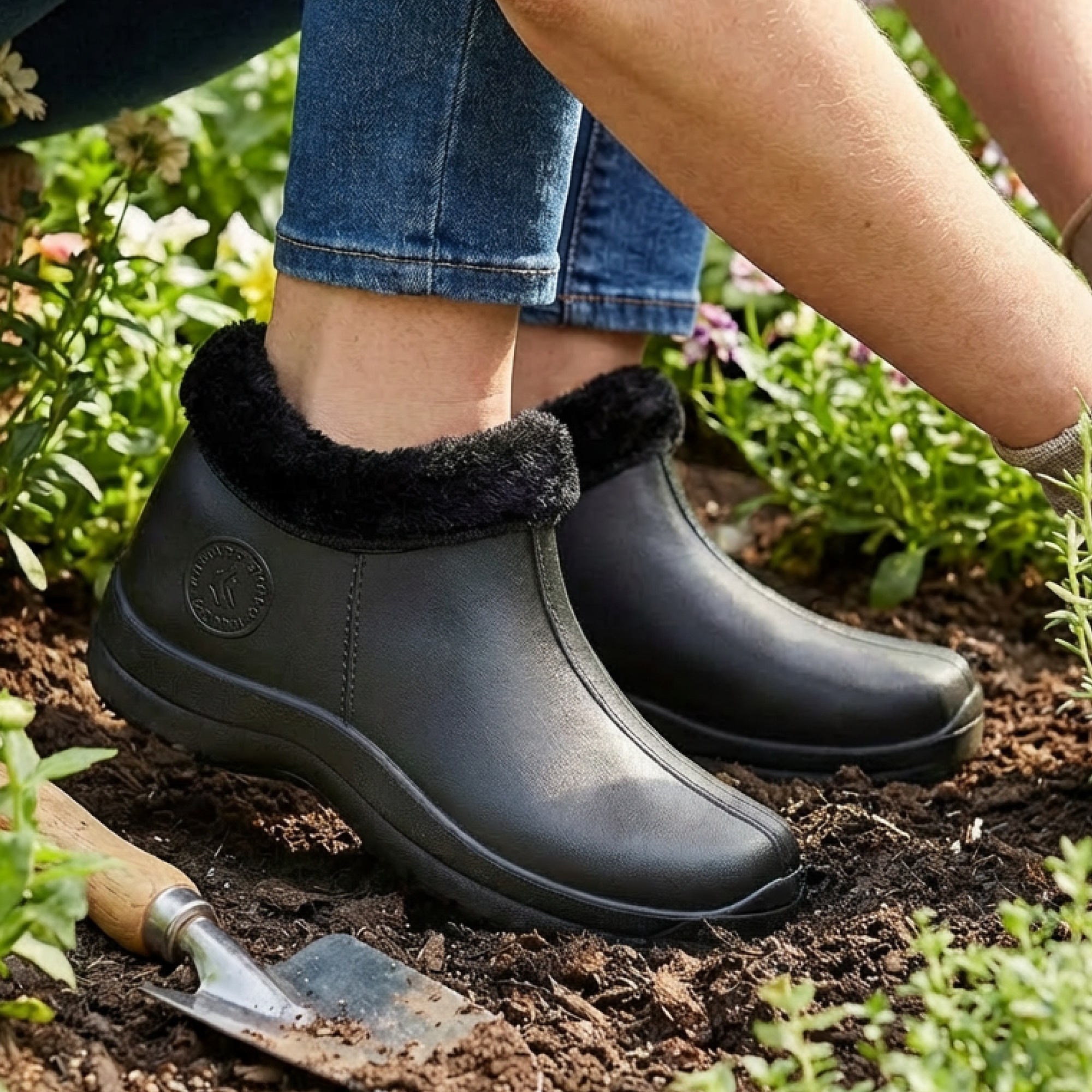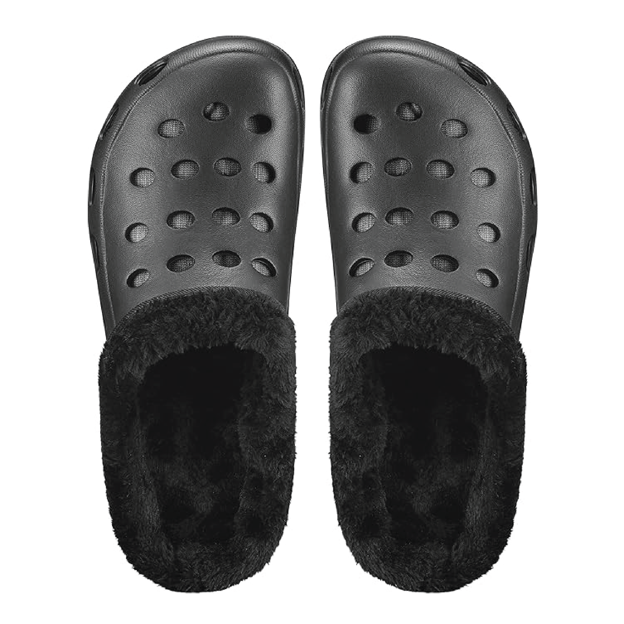 Estro - A01 - Waterproof Thermal Fur Lined Womens Low Garden Clogs - Black