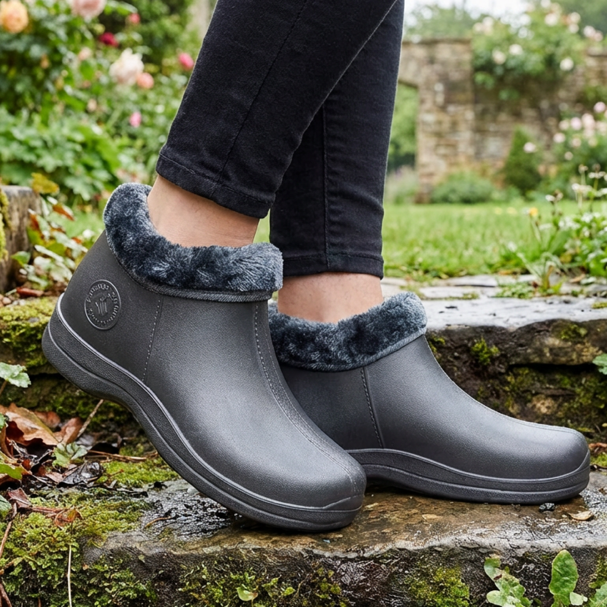 Estro - A16 - Waterproof Thermal Fur Lined Womens Mid Garden Clogs - Dark Grey