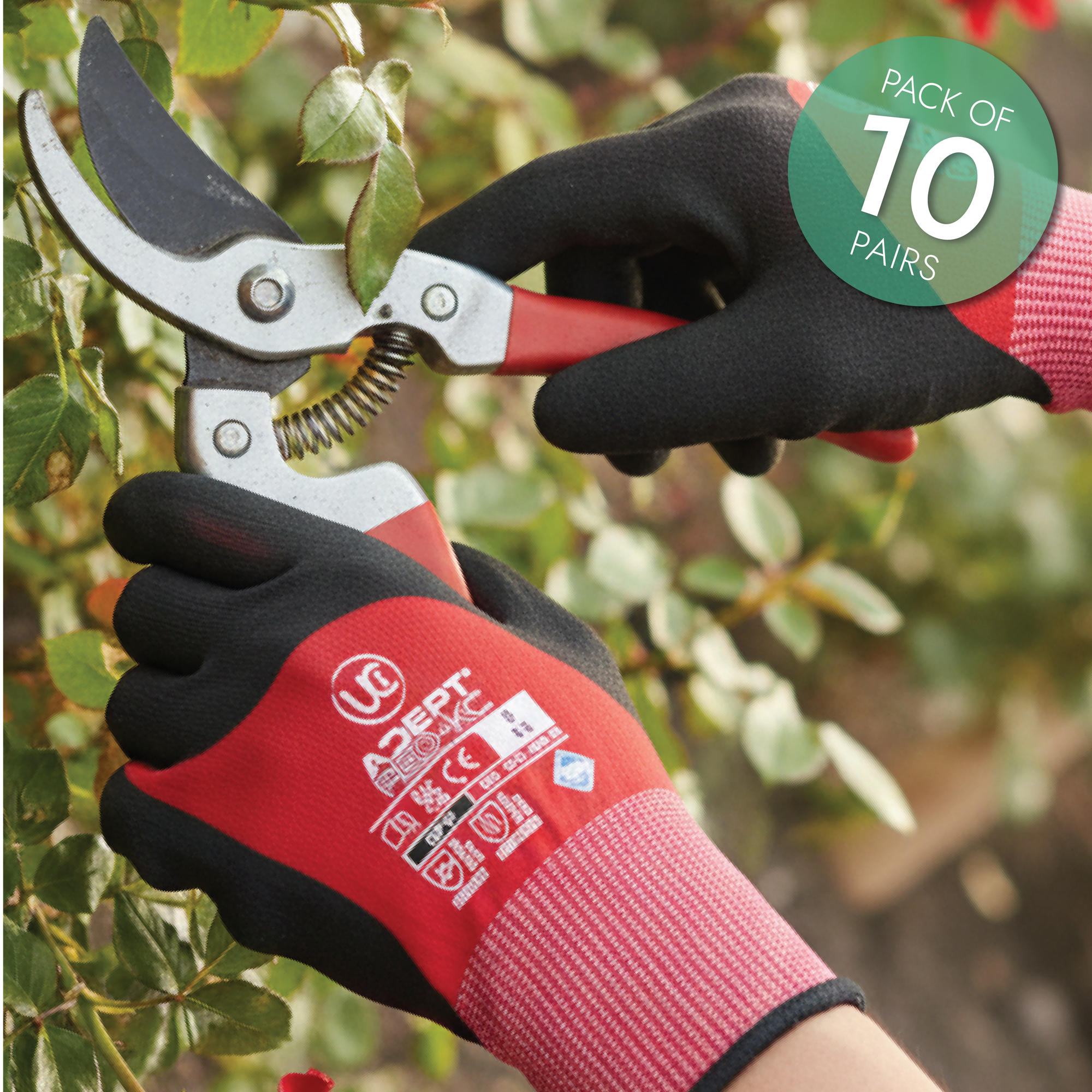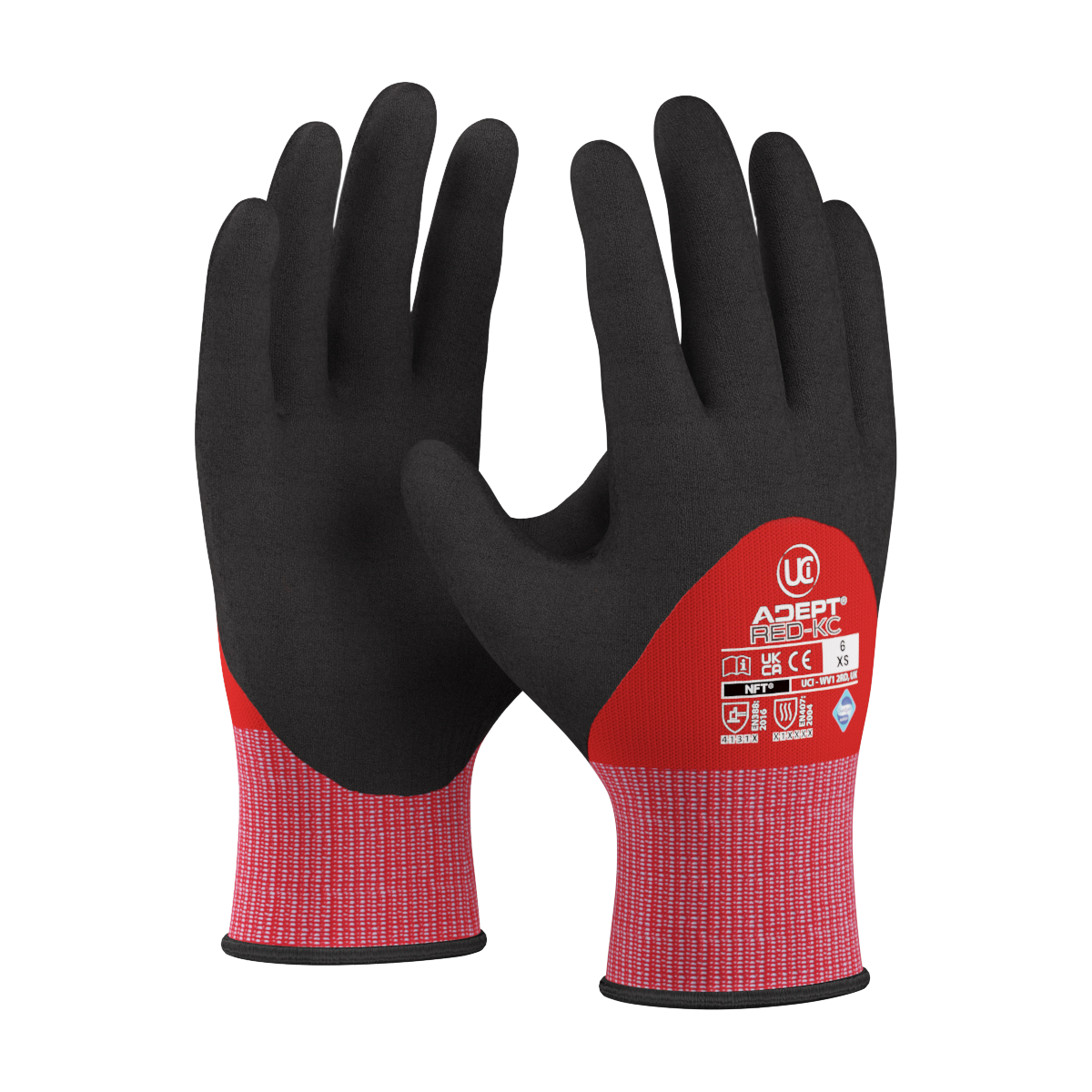 UCI - Adept KC - Knuckle 3/4 Coated Foam Nitrile Gloves - Red - Pack of 10