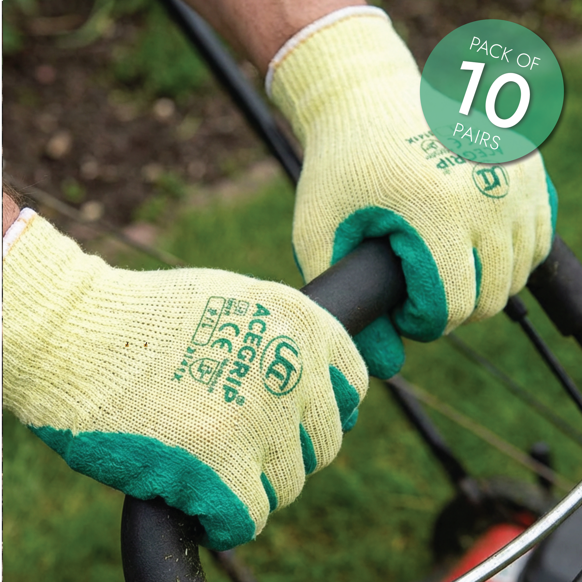 UCI - Ace Grip - Latex Crinkle Palm Gloves - Green/Yellow - Pack of 10